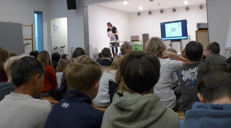 De kinderen vonden het erg grappig om te zien hoeveel verschil het maakt als je de verhoudingen van de karakters verandert. De groepen waren soms wat druk, maar ook enthousiast. Het waren dan ook 4 grote samengestelde groepen uit klas 5,6,7 en 8. Variërend in de leeftijd van 8 tot 12 jaar. In totaal zag de auteur bijna 300 leerlingen. Per groep waren er soms wel 83 kinderen aanwezig. (Foto: PR)